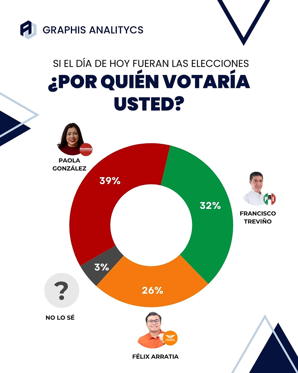 Paola González lidera las encuestas de intención de voto en Juárez, NL. Según las encuestas de Graphis Analytics, Paola González se encuentra en primer lugar en la intención de voto, lo que indica un fuerte respaldo por parte de los votantes en la región